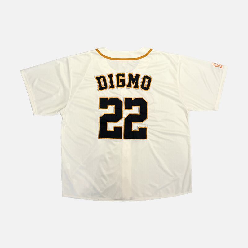 A renewed DIGMO baseball logo is boldly embroidered on the front, with a “DIGMO” name and number “22” on the back.