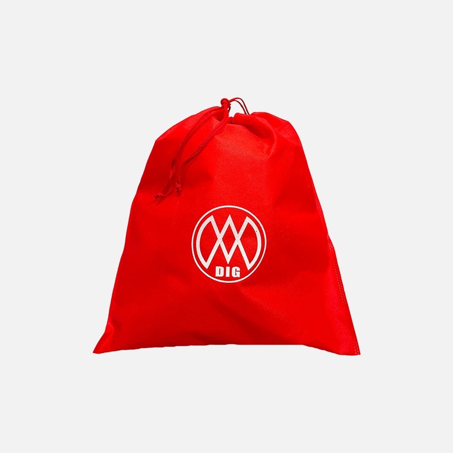 鮮やかなレッドにDIGMOオフィシャルロゴをプリントした、不織布ギフトバッグ。