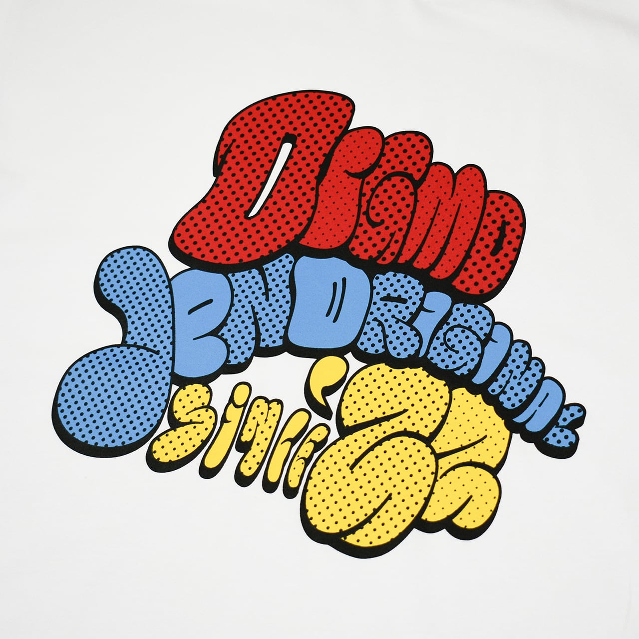 ポップアートやバブルレターから着想を得た、4版構成の多色シルクスクリーンプリントを採用。